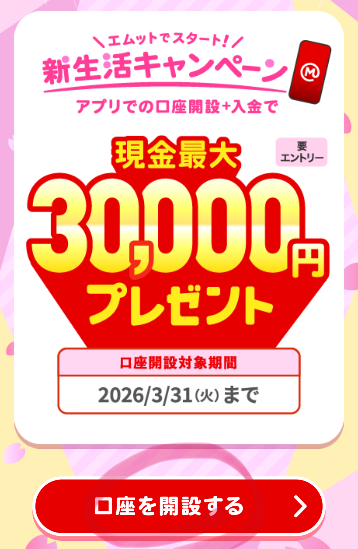 ③新生活キャンペーンのエントリー&15万円口座に入金