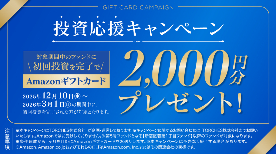 2025年12月10日から2026年1月31日の期間中に、初回投資完了で全員アマギフ2000円もらえるキャンペーン来ました❤️