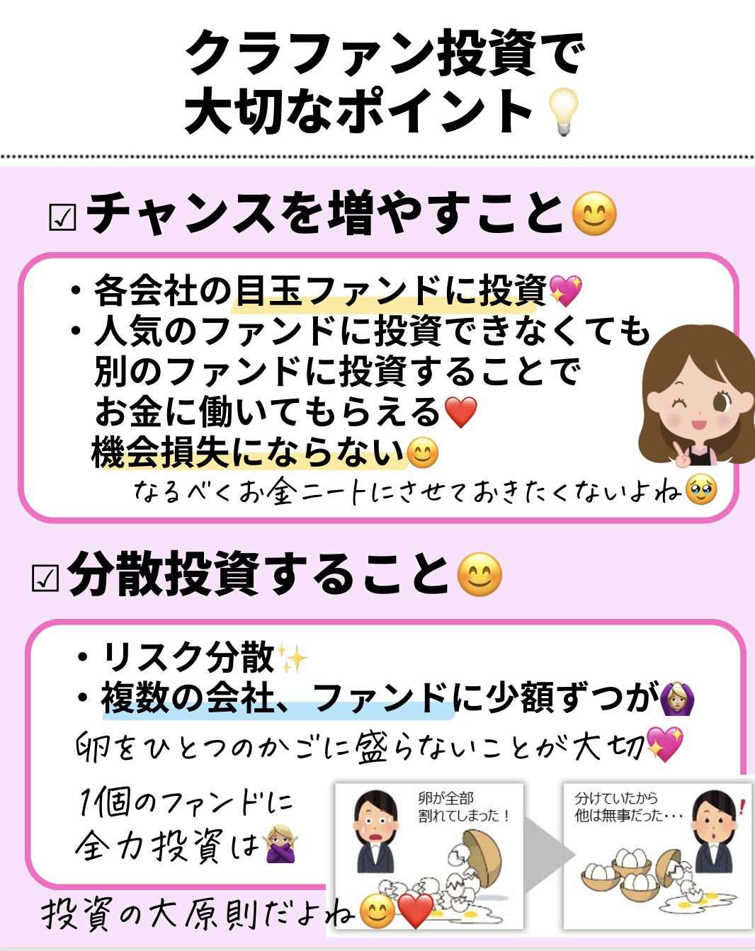・クラファンごとに得意な分野や特徴があるから「短期で回したい」「利回りを優先したい」「優待がほしい」などと目的に合わせて使い分けられて、いいとこ取りできる✨